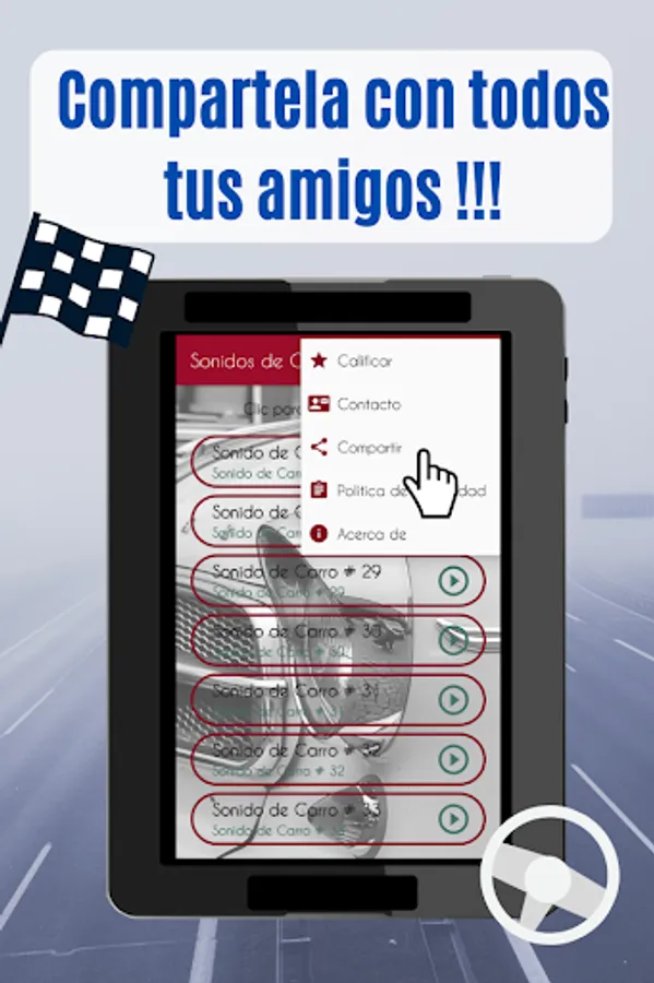 It is already in the Play Store available to download our mobile car sounds application, enjoy our app with mobile car ringtones (use them as ringtones, SMS tones, alarm or notification) and enjoy these amazing sounds. Download it right now and enjoy all the content.
