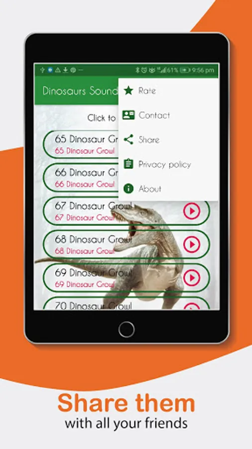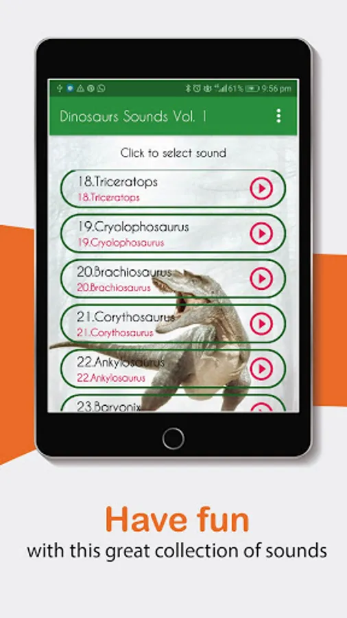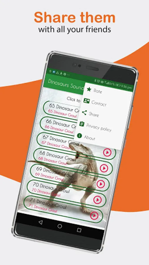 It is already in the Play Store available to download our application dinosaur sounds, tones, enjoy our app with great dinosaur tones (use them as ringtones, SMS tones, alarm or notification) and brighten up your day with these beautiful tones. Download it right now and enjoy all the content.