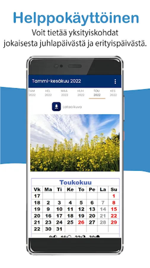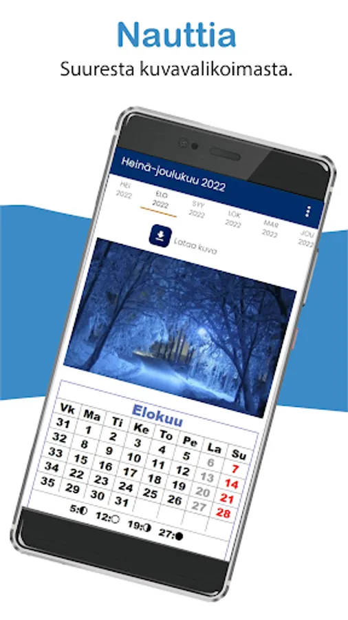 Our Finland 2023 calendar app for Android devices is already in the Play Store, enjoy our app. Use it as a tool to observe and search for special days, holidays, special dates, work weeks and moon phases. Enjoy all the content.