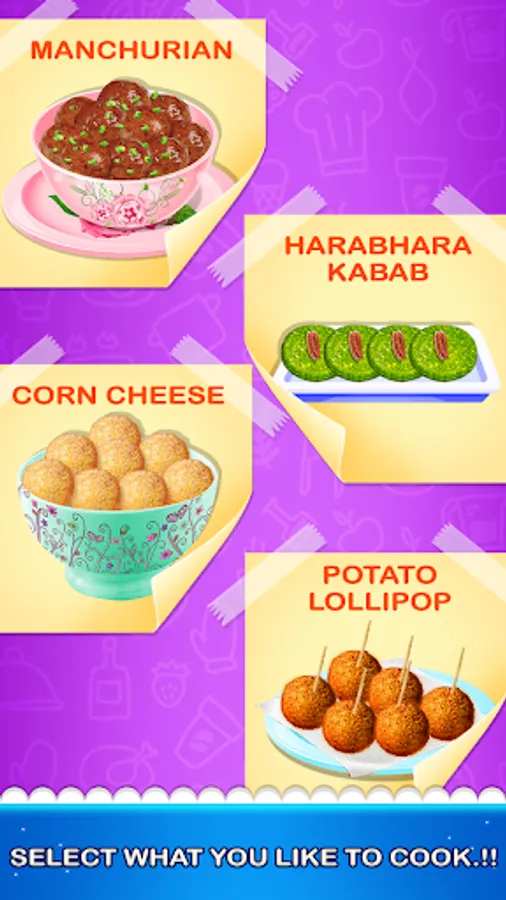 Be a little kitchen chef and cook Spicy Manchurian, Harabhara Kabab, Corn Cheese Balls and Potato Lollipop. All yummy mouthwatering starter food recipe in one game. You can learn new and healthy food in this kitchen cooking games. Here you can become the ultimate food maker by collecting your ingredients, mixing them together, cooking your starter food as well as adding the final finishing touches to it. Decorate your food with different sauces and toppings. You can also change table cloths, dishes and spoons.