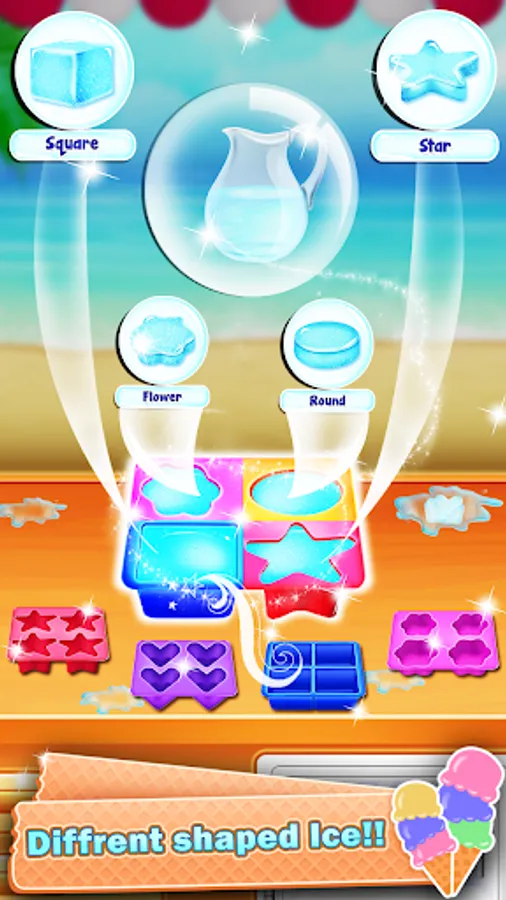 Make your virtual ice candy with the snow cone of ice candy and the juicy fruit stick of popsicles. Use different juicy food flavors to make ice cream popsicles