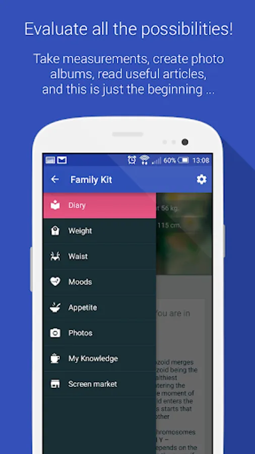 Track your performance! Check the change of your body weight, waist circumference, or appetite, as well as the height and weight of your baby! Tracks the performance on the charts with FamilyKit!