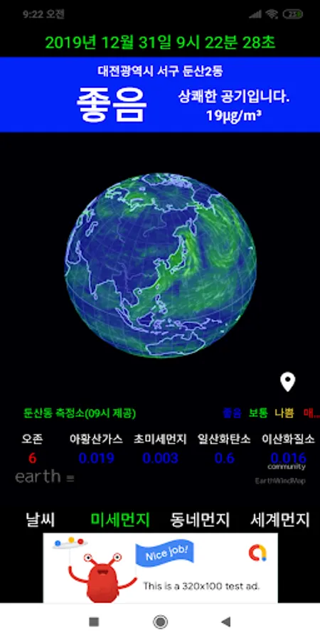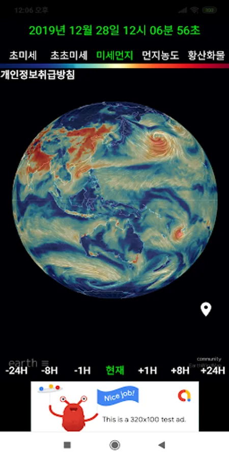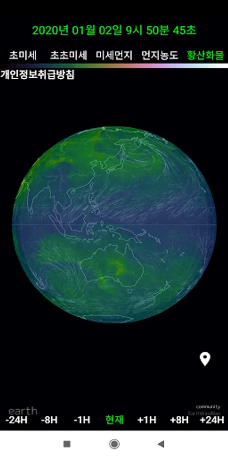 (미세먼지, 초미세먼지 : https://earth.nullschool.net/ , 1시간 마다 업데이트)