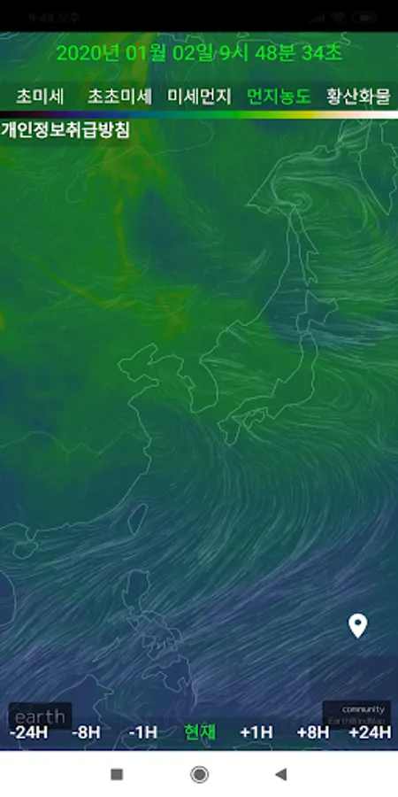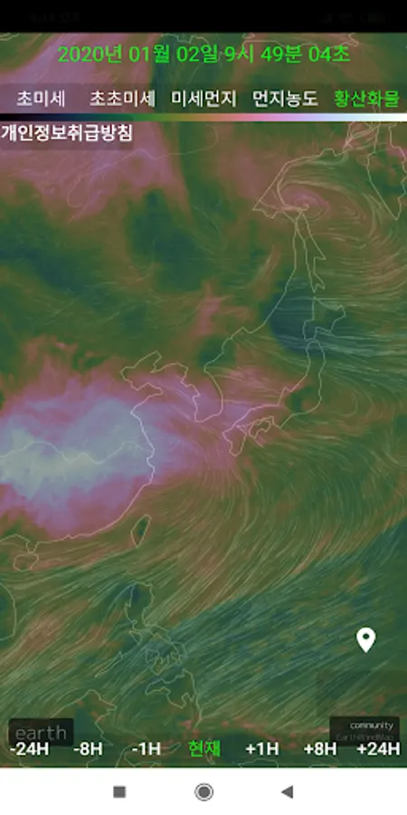 (실시간 풍향 : https://earth.nullschool.net/ , 3시간 마다 업데이트)