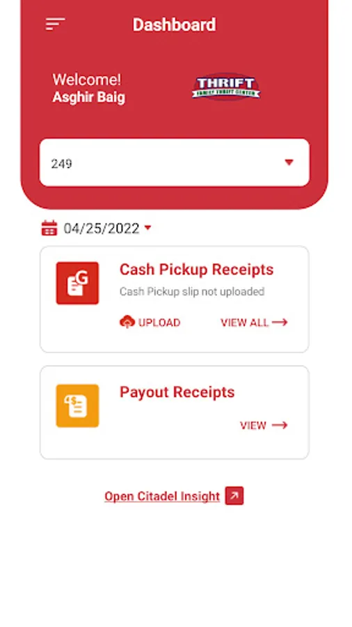 App for FTC's Manager to upload payout and garda receipts.