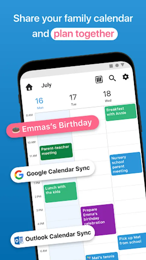 FamilyWall is the best organizer to plan your family life and keep everyone informed, using a shared calendar, grocery lists, meal planner, finance tracker, timetable, photo and video album, secure messenger, and much more.
