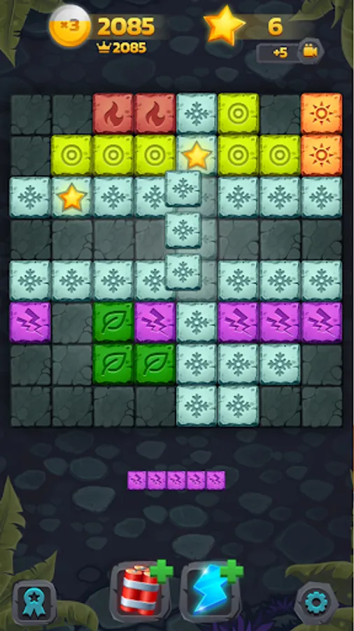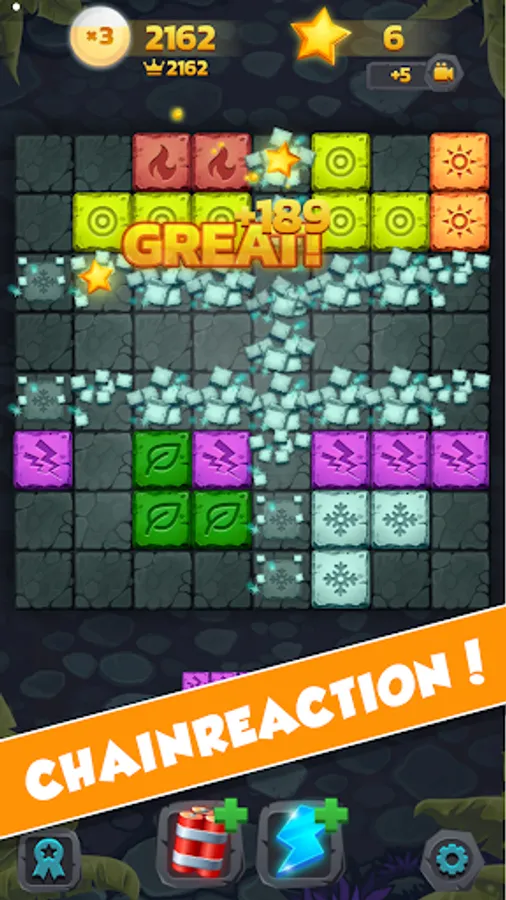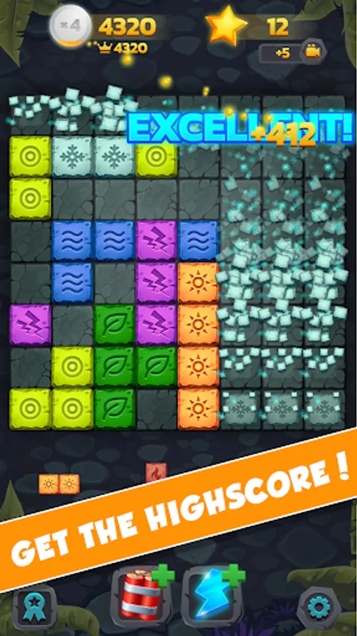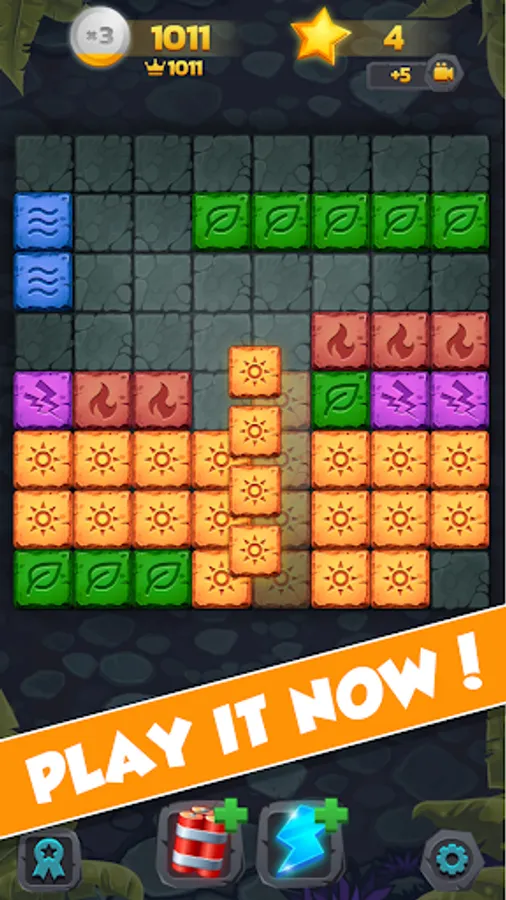 Weather the elements in this crazy addictive puzzle game! Simply drag and drop the block shapes onto the grid in order to create vertical or horizontal lines and score as many points as possible. Only full lines will be destroyed, so plan ahead and keep an eye on the available pieces. The game is over if there's no space left on the grid to place a block. Collect stars to buy power ups, complete achievements and try to remove several lines at once to earn additional points!