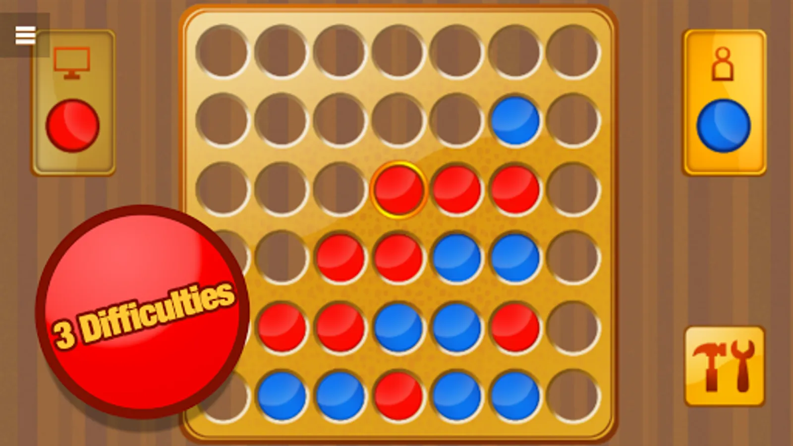 You play 4 in a Row against the artificial intelligence of our app in three difficulty settings. This is the perfect training ground to acquire the necessary skills to compete against other people in our multiplayer modes.