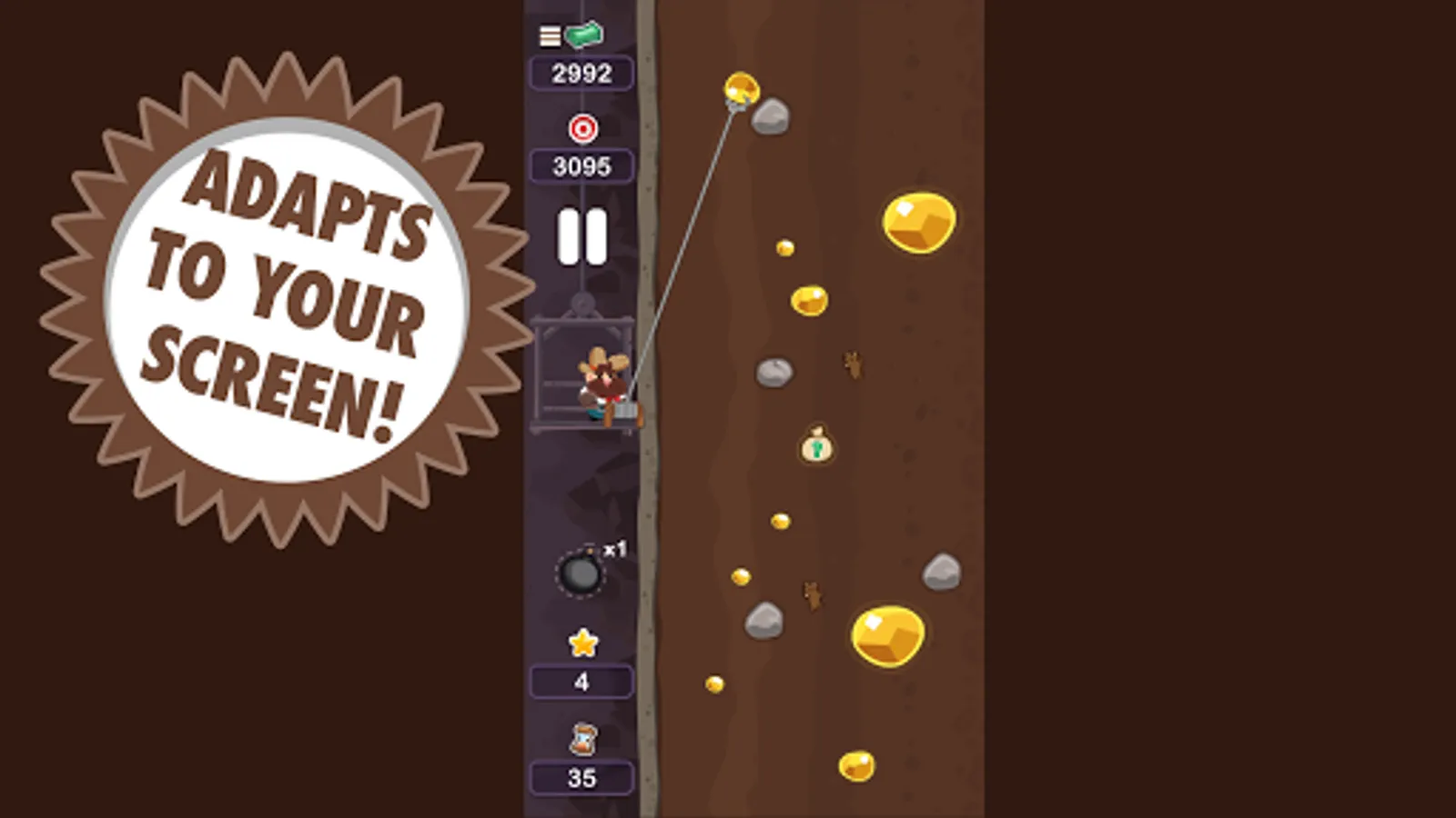 Each level has the same gameplay: your hook swings from left to right automatically and you have to release it by tapping the screen to collect gold and diamonds or those little bags with a surprise in it.