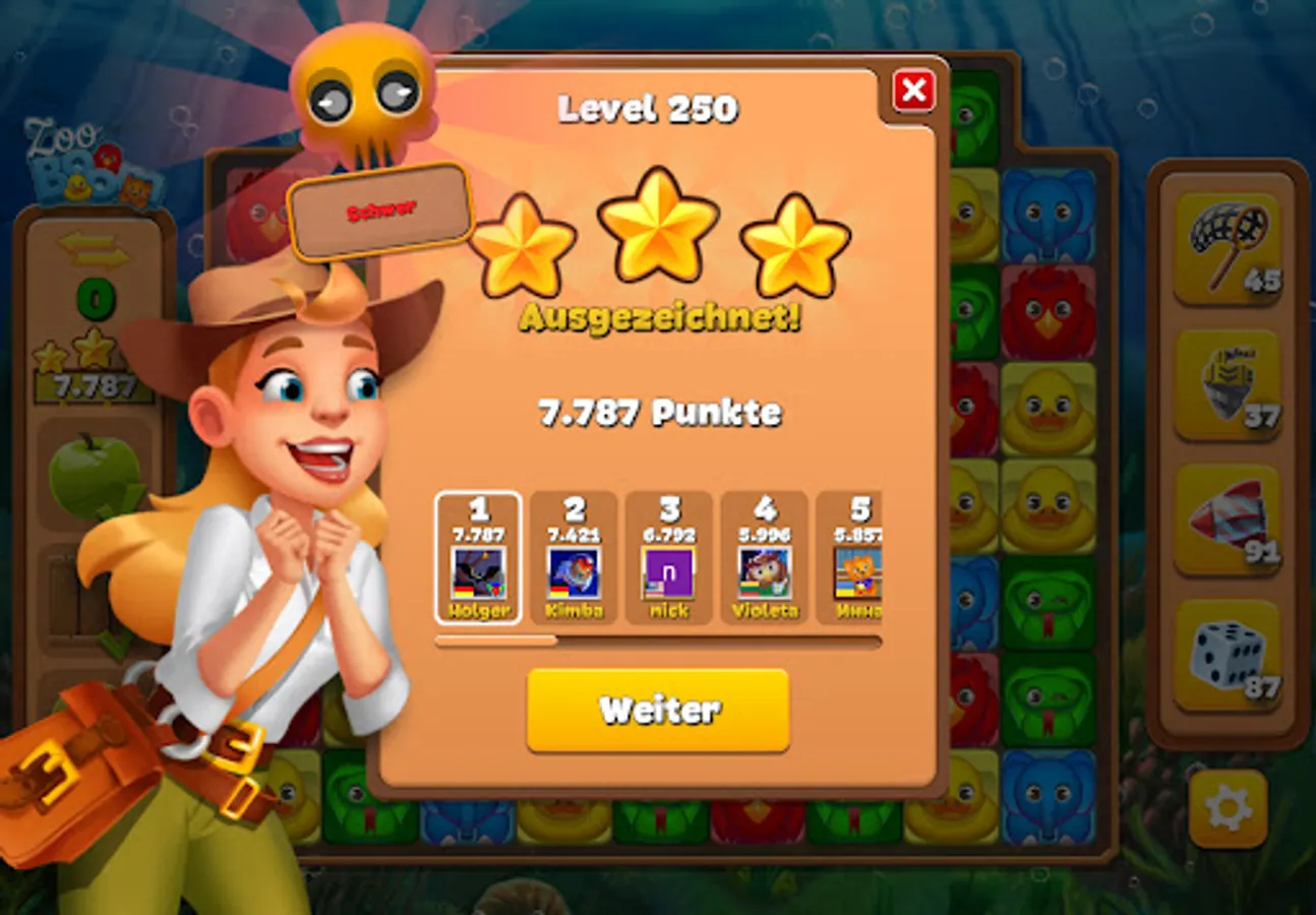 - Fun animal characters and various powerful boosters to help you complete your adventure