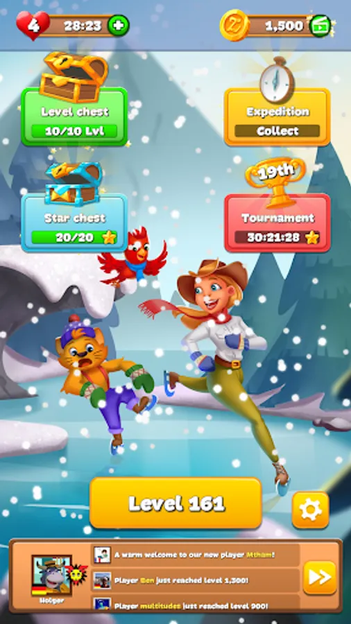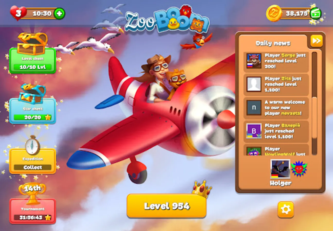 If you match multiple creatures of the same type, you can create special boosters: bees buzz vertically or horizontally though your rows, while the adorable skunks repel everyone within a radius as soon as they use their stinky spray. Try to combine those specials for huge booms and blast your way through 1565 challenging levels! Win stars to open treasure chests which give you helpful rewards and make sure to check back every day for your daily gift.