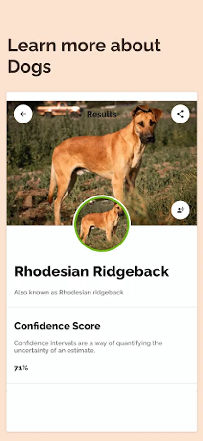 The Dog Breed Identifier app contains all information about dog breeds: looks, character, weight and also contains dog photos.
