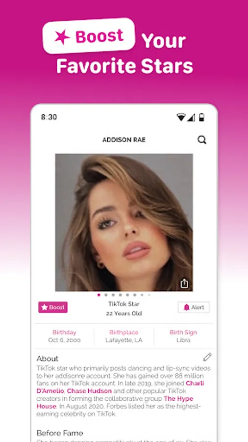 Show support for your favorite celebrities by boosting their popularity.