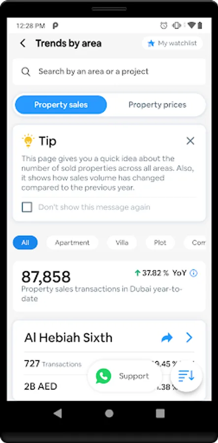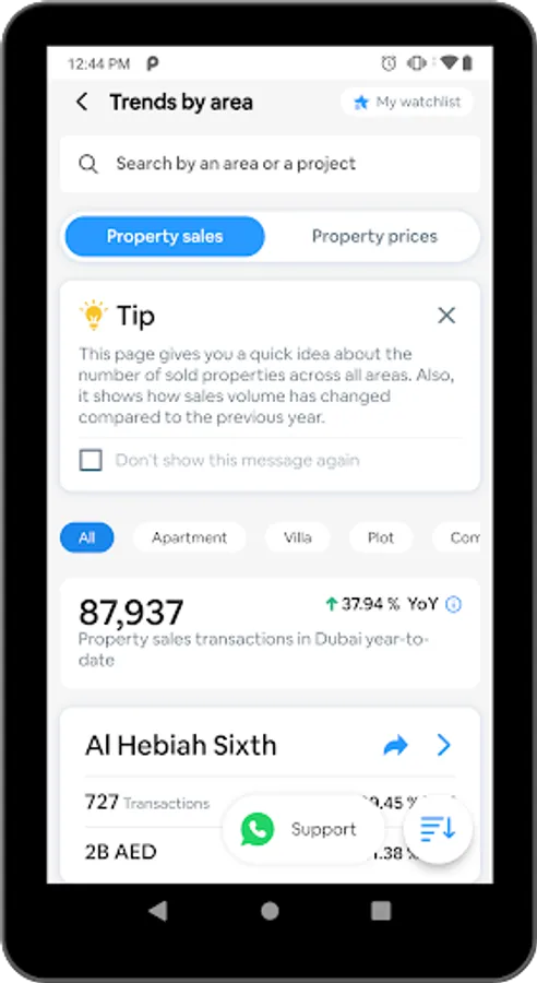 With its real market insights, property trends, information on property prices and construction progress reports, all sourced from Dubai Land Department (DLD), it empowers you with direct control and 100% transparency over your real estate engagements.