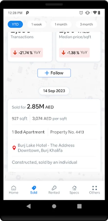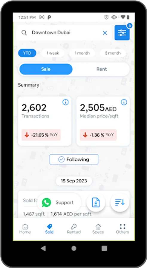 This smart application enables buyers to learn details about every sold property in a project or area. All you have to do is go to Trends by Area and search for the project or area of interest with advanced search filters. It will provide you with all the information about every single sales transaction of your interest such as price per sq.ft, total price, unit size, and the date. It will also show whether the particular transaction was a mortgage or cash transaction. This application will also allow you to share transactions via any medium.