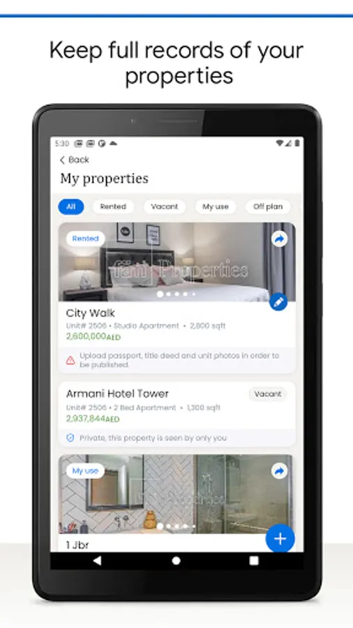 List your property - Upload Property Images, Title Deed and Passport Copy and deal directly with interested buyers. Zero Commission - More Savings.