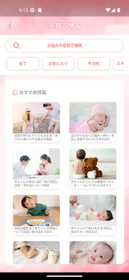 ◎ In addition, the recommendation information includes childcare information provided by experts and consultation "Awaawataisou®" that enhances the attachment of parents and children through physical contact with the baby, as well as mental care and aromatherapy for mothers through counseling, videos, etc. We also provide support for maintaining mental and physical health through yoga, nutrition, etc.