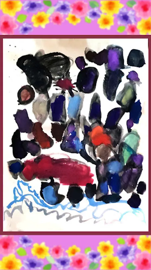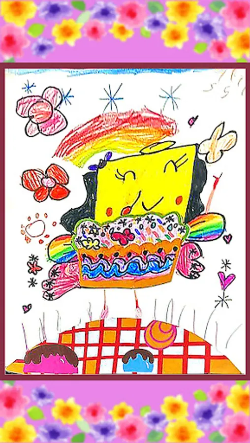 Paintings of Liu's twin sisters in kindergarten