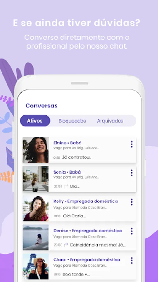 In the application you can search, communicate and make appointments for interviews or work with domestic professionals in a simple, safe and fast way.