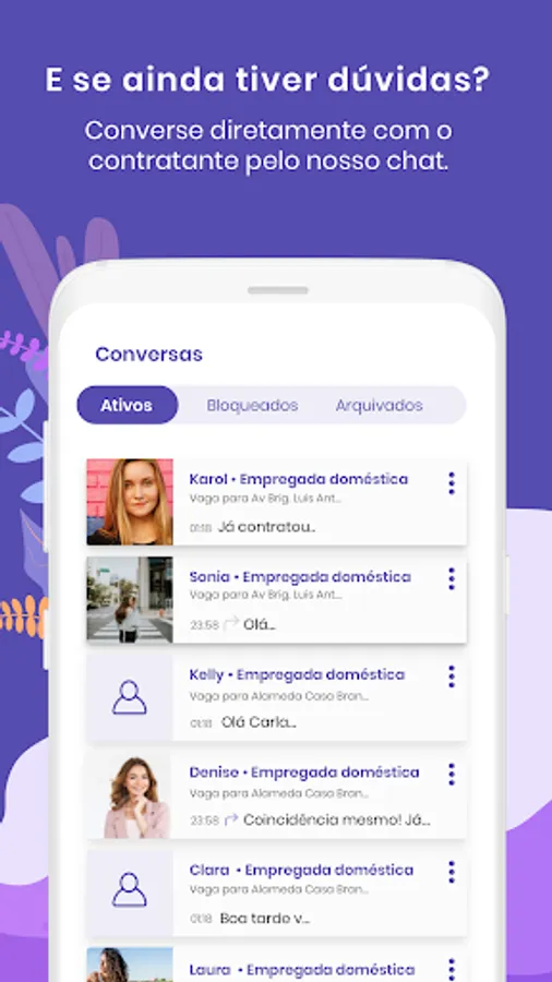Through our APP you can find vacancies through the search, apply, communicate and even receive appointments for interviews in a simple, safe and fast way.