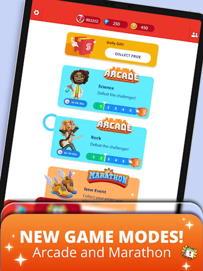 - Hone your skills against tricky AI opponents in the new arcade gameplay mode of this word categories game!