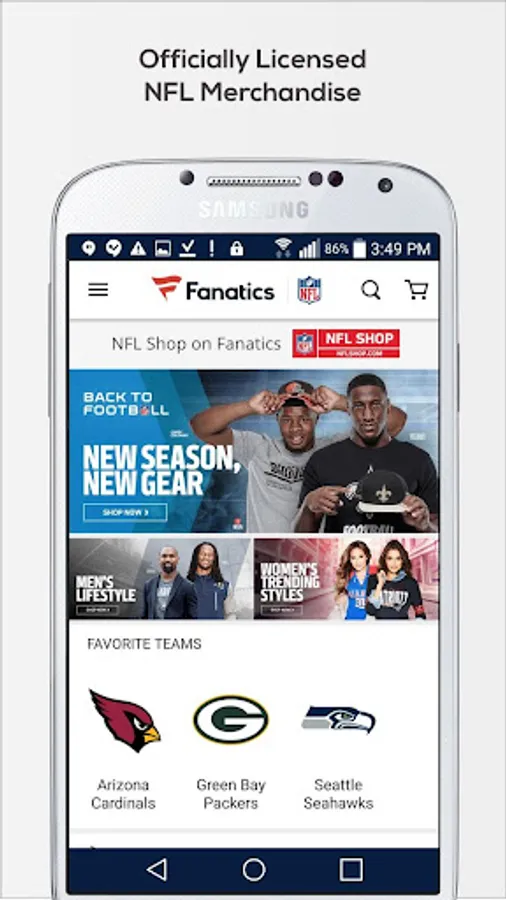 With the Fanatics NFL Shop app you get quick, 24/7 access to the latest and greatest NFL gear. Personalize the app with the team (or teams) you love or just browse for fun – at home, at work, or at the game.