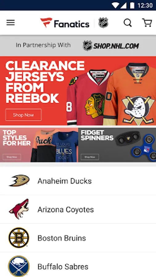 With the Fanatics NHL Shop app you get quick, 24/7 access to the latest and greatest NHL gear. Personalize the app with the team (or teams) you love or just browse for fun – at home, at work, or at the game.