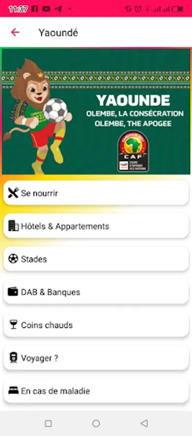 - Obtenir les informations sur les villes de compétition (Stade, pharmacies, hopitaux etc.)