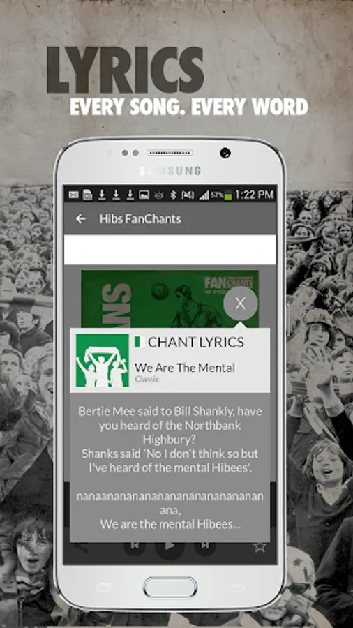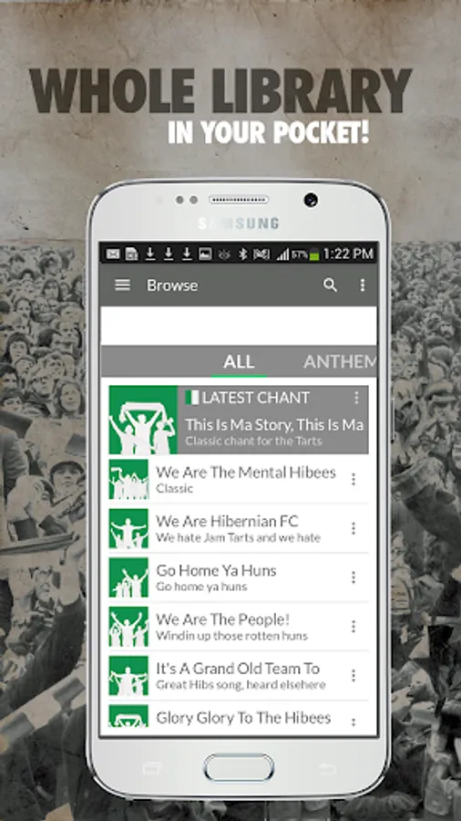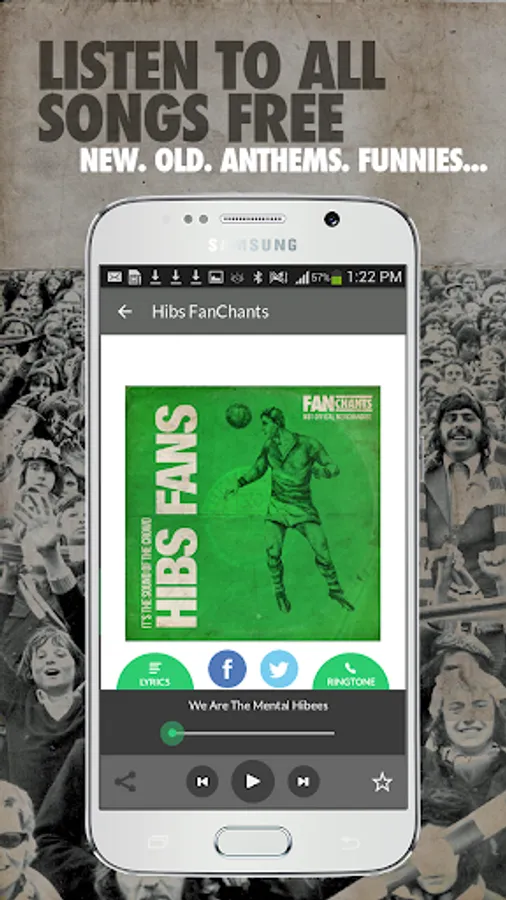 Real Hibs Fans football songs to play through speakers, send to mates and use as soccer ringtones for your smartphone. Receive alerts for new Hibernian Fans chants and use the in-built recording feature to submit new FanChants.