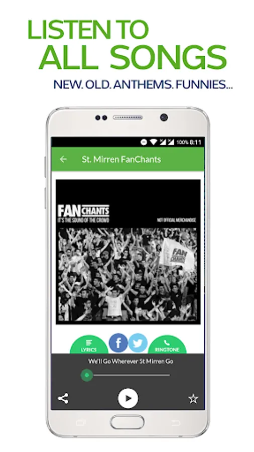 Real St. Mirren Fans football songs to play through speakers, send to mates and use as soccer ringtones for your smartphone. Receive alerts for new Buddies Fans chants and use the in-built recording feature to submit new FanChants.