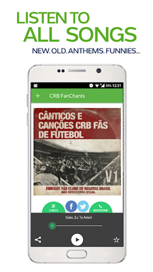 - Record Songs - Keep the Clube de Regatas Brasil Fans song library up to date and submit new chants using the high quality recording feature