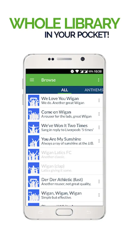 - Full Library - Listen to all Wigan Supporters football chants - old and new, anthems and funnies