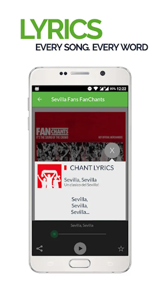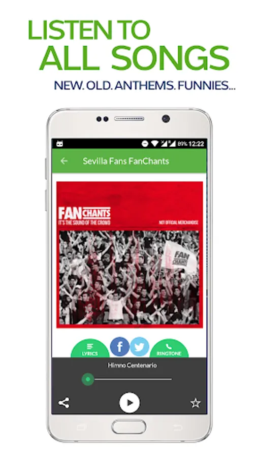 Real Sevilla Fans football songs to play through speakers, send to mates and use as soccer ringtones for your smartphone. Receive alerts for new Sevilla Fans chants and use the in-built recording feature to submit new FanChants.
