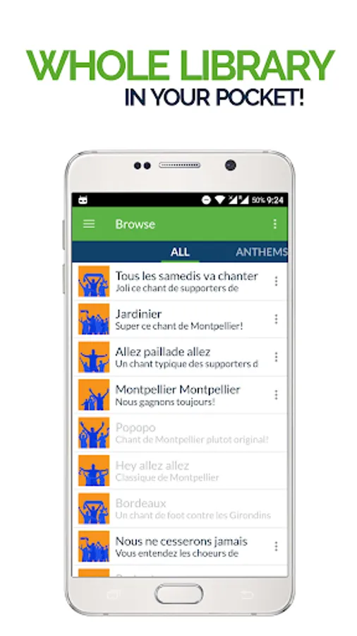 - Record Songs - Keep the Montpellier Fans song library up to date and submit new chants using the high quality recording feature