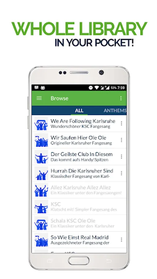 - Full Library - Listen to all Karlsruher Supporters football chants - old and new, anthems and funnies