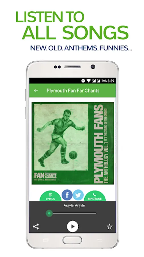 Real Plymouth Fans football songs to play through speakers, send to mates and use as soccer ringtones for your smartphone. Receive alerts for new Argyle Fans chants and use the in-built recording feature to submit new FanChants.