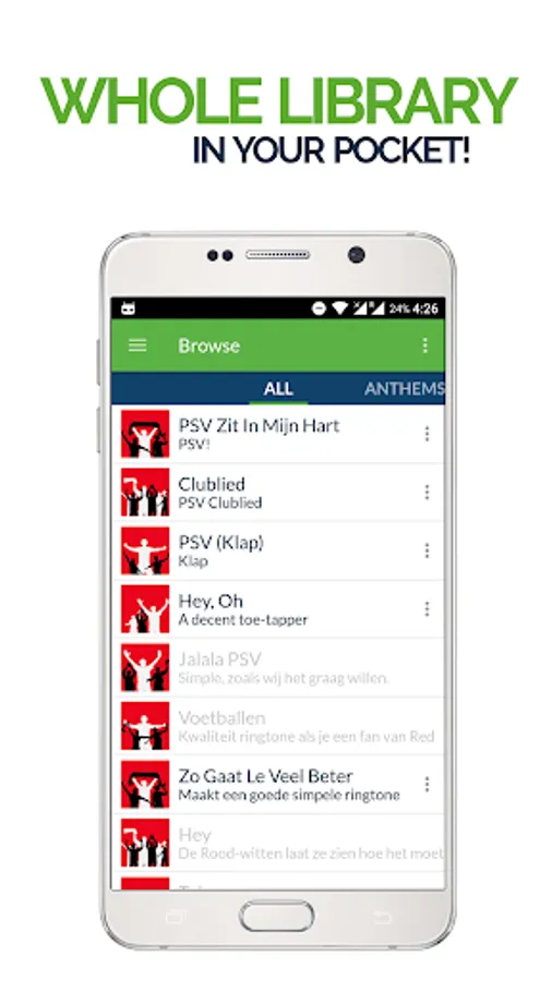 - Full Library - Listen to all PSV Supporters football chants - old and new, anthems and funnies