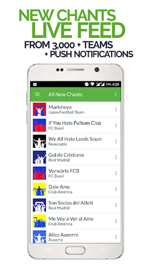 - New Chants (Worldwide) - New football songs from 3,000 teams worldwide
