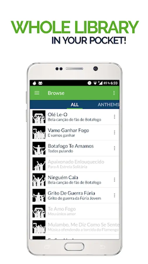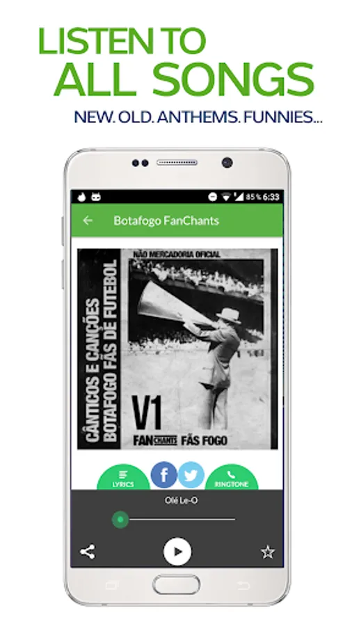 Real Botafogo Fans football songs to play through speakers, send to mates and use as soccer ringtones for your smartphone. Receive alerts for new Botafoguense Fans chants and use the in-built recording feature to submit new FanChants.
