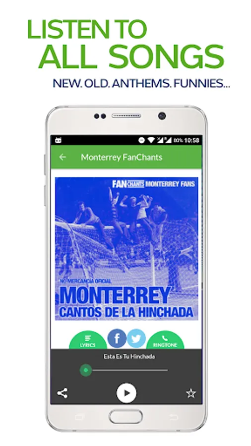 Real Monterrey Fans football songs to play through speakers, send to mates and use as soccer ringtones for your smartphone. Receive alerts for new Rayados Fans chants and use the in-built recording feature to submit new FanChants.
