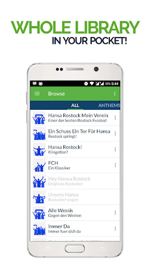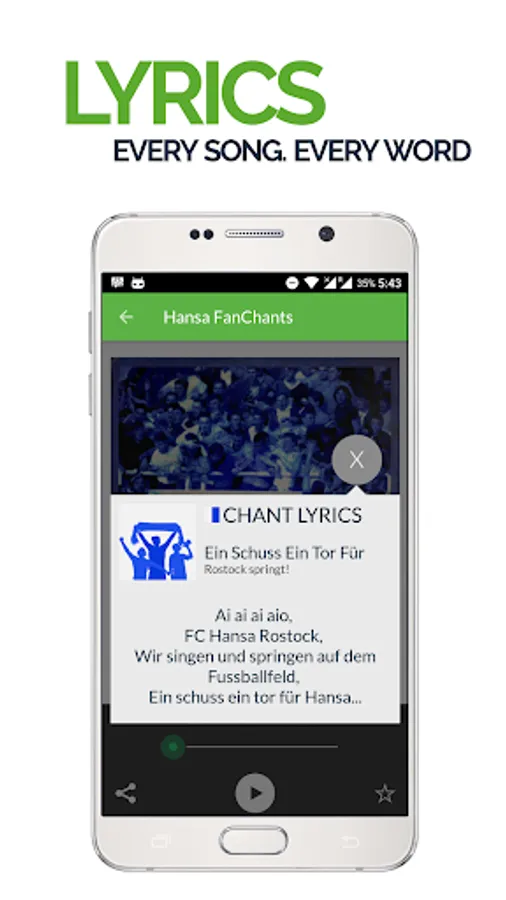 - Record Songs - Keep the Hansa Rostock Fans song library up to date and submit new chants using the high quality recording feature