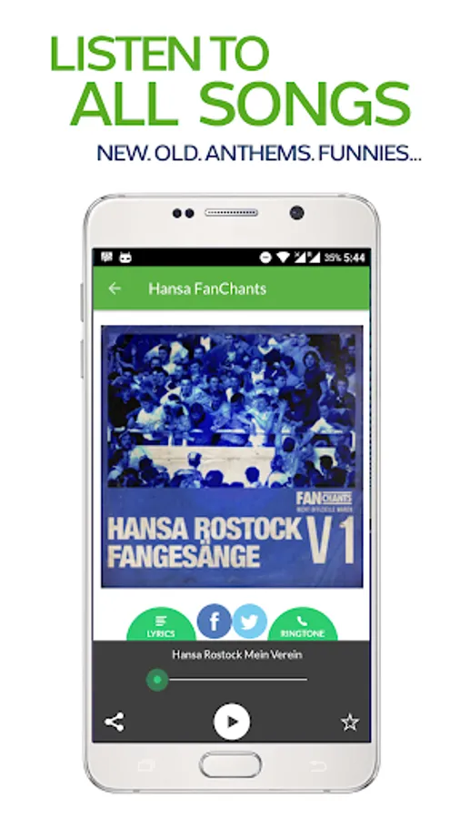 Real Hansa Fans football songs to play through speakers, send to mates and use as soccer ringtones for your smartphone. Receive alerts for new Hansa Rostock Fans chants and use the in-built recording feature to submit new FanChants.