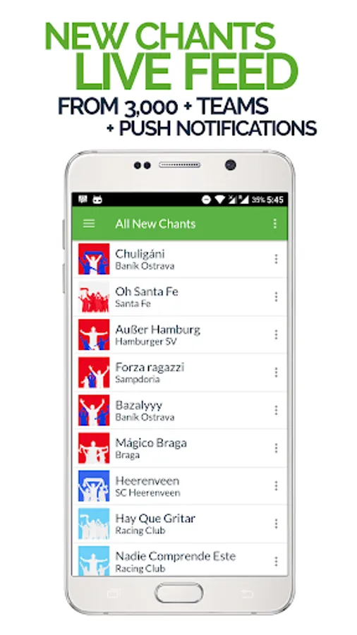 - New Chants (Worldwide) - New football songs from 3,000 teams worldwide