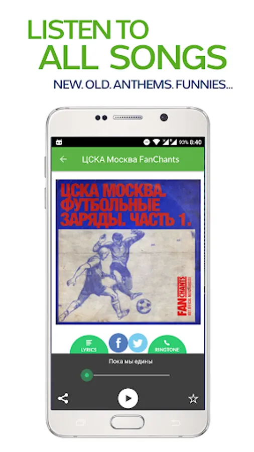 - Record Songs - Keep the CSKA Moscow Fans song library up to date and submit new chants using the high quality recording feature