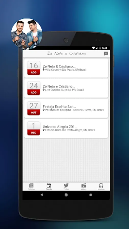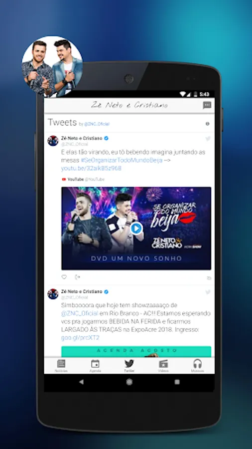 Are you really a fan of Zé Neto and Cristiano? Then download our app now to have access to the latest first-hand news from Zé Neto and Cristiano, songs, clips, social networks, videos and updated show schedule of the best country duo.
