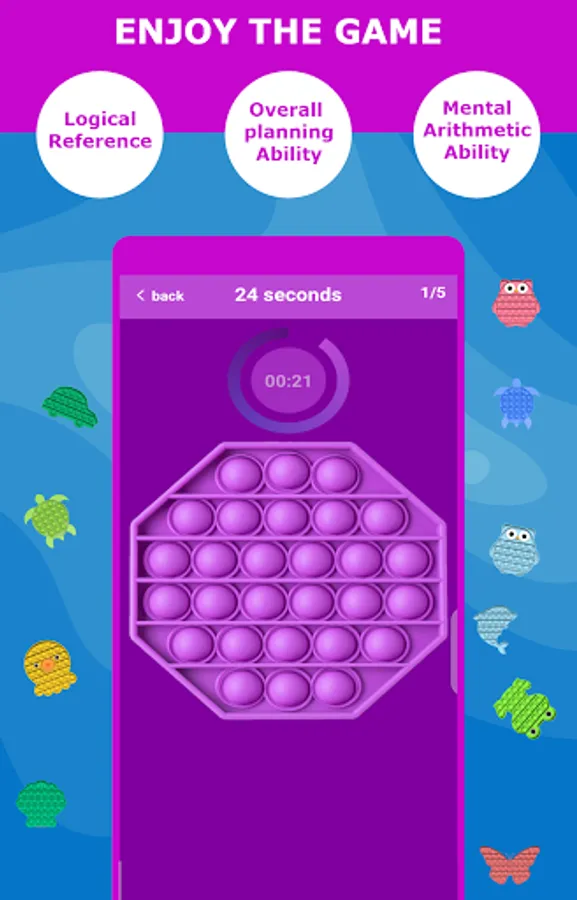 Take turns popping bubbles. You can pop as many as you like in a line in one direction. Win by finishing all bubbles with time.