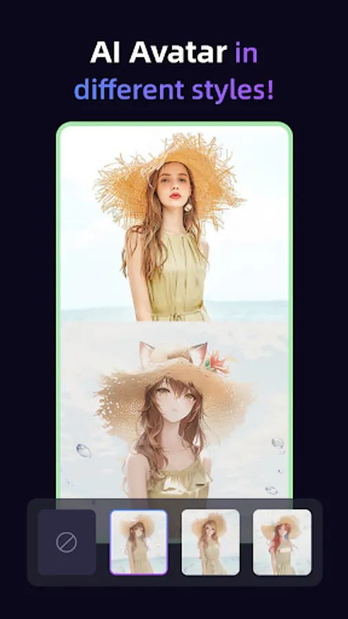 Empowered by advanced AI technology, your ordinary photos metamorphose into stunningly intricate anime avatars, each radiating its own unique style. Unleash your artistic prowess and craft an indelible anime persona that's exclusively yours!