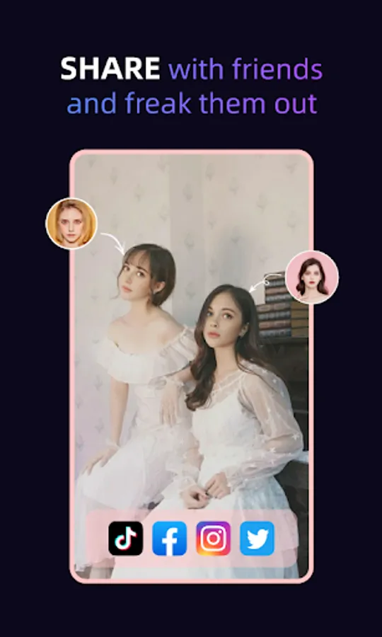 The all-in-one app that provides face swapping, AI Avatar, AI age or gender transformation, AI animation, and photo filter. With just a single selfie, we empowers you to explore and unleash your creativity.