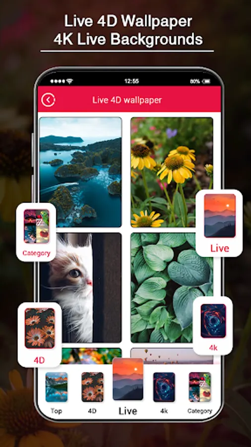 In this 4K HD Wallpaper, 4D Background app you find number of wallpaper categories to Decorate your phone lock screen and home screen.