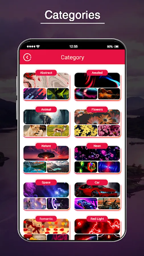 - Wallpaper divides in categories to easy find of your interest like Amoled, Abstract, Nature, Love, Animal, Flowers, Neon , ed Light, Space , Vehicles, Art, Fire, Texture, Solid etc..